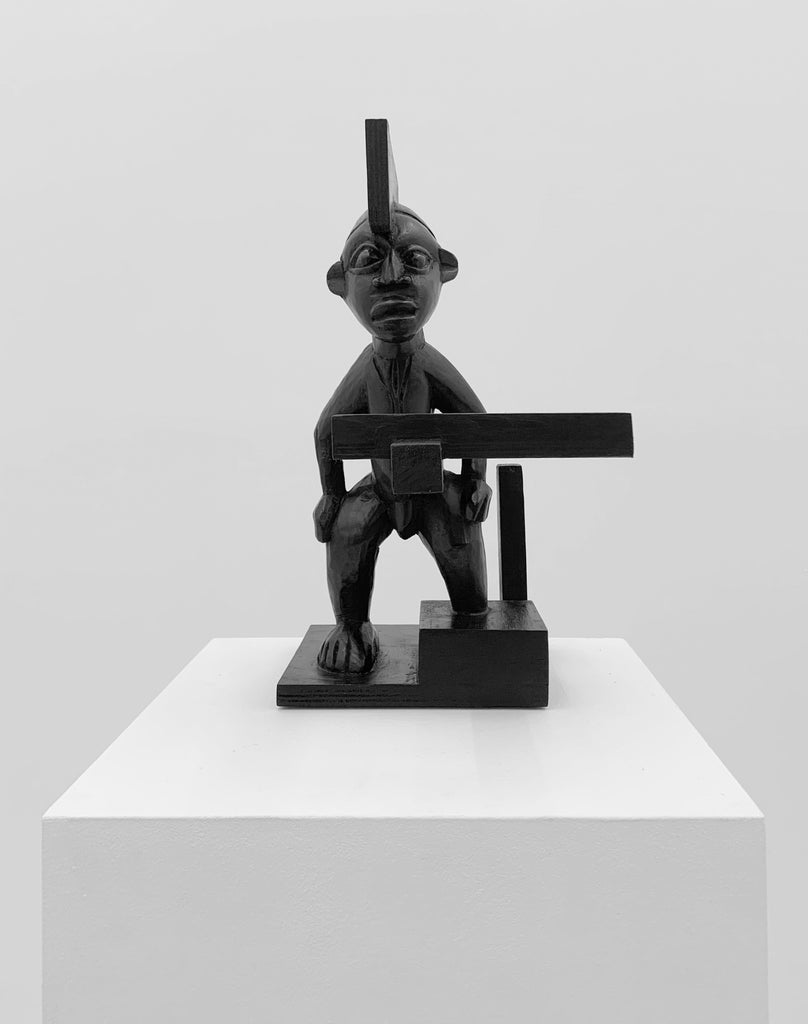 Damaged African statues, wood scraps, Indian ink and black wax