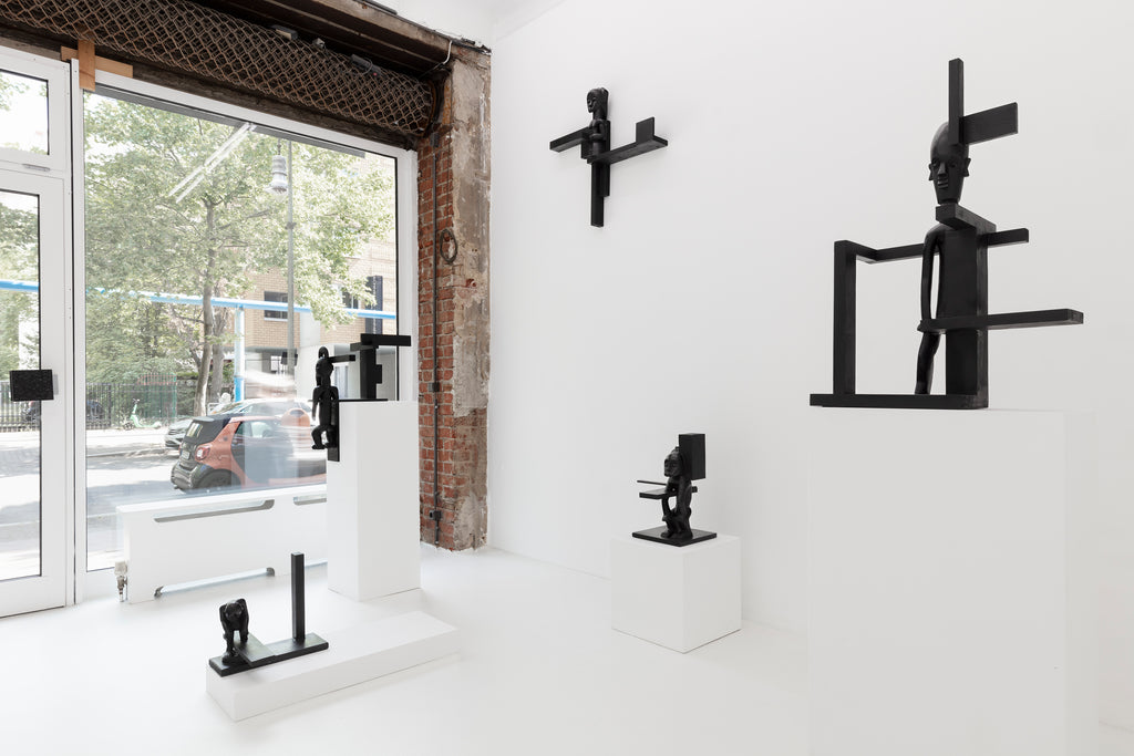 In the exhibition "Atlantes & Cariatides" John Cornu confronts the viewer with deconstructed African wooden sculptures of the type "simple replicas of a so-called primitive art". They are found objects and processed by the artist in a modernist way. The sculptures are tourist souvenirs from Africa, like millions of which have probably ended up in living rooms worldwide since the beginning of the 20th century. John Cornu addresses the "points of tension between African and European sculpture" and anchors "a multitude of paradoxes in his installation", according to Jean-Roch Bouiller, director of the Museum Des Beaux-Arts Rennes, in a text about John Cornus' sculptures "Atlantes et Cariatides “.