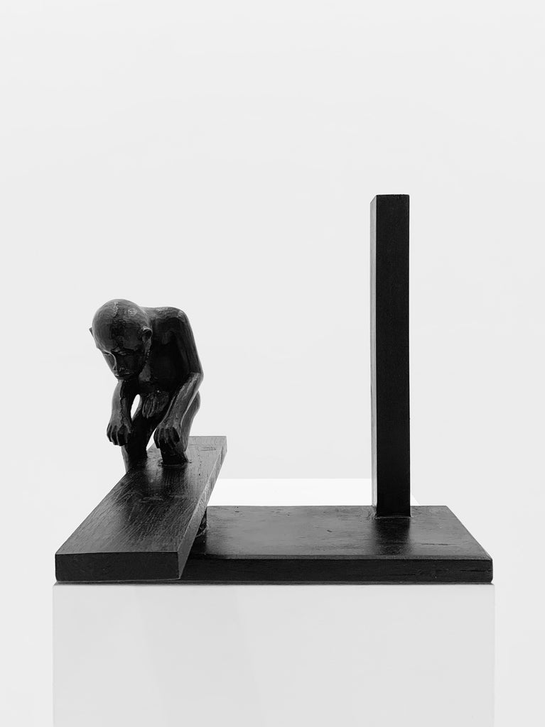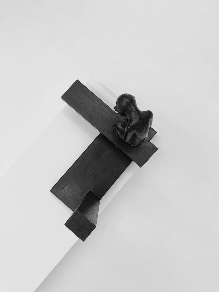 Damaged African statues, wood scraps, Indian ink and black wax